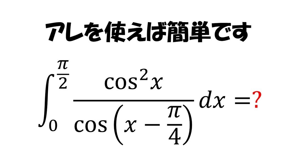 2023-12-22 アレを使えば簡単に解けてしまう積分 積分道場 こんにちは!マルチーズ先生です。有名なあのテクニックを用いて解いていきます! 【問題】以下の定積分を計算せよ。 【ヒント】 解答はyoutubeを見てね! ランキング参加中数学・科学・工学 ランキング参加中数学